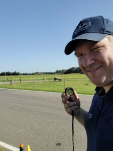 Johnny stond langs het parcours en klokte zorgvuldig de gereden tijden