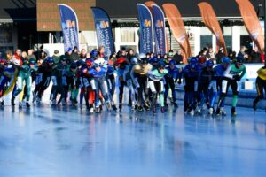 De thuisbaan van Sanne van Heel, Daniëlle en van ploegleider Johnny. Dus vele sponsoren, familie en vrienden langs de baan deze dag.