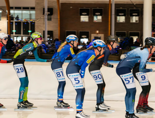 Onze dames waren gretig en waren in de openingsfase erg actief. Wel waren we wat ongelukkig met de valpartijen. Zo kwam Luna in de eerste 20 kilometer 4x ten val en ook Amber kwam al vroeg in de wedstrijd ten val waarbij ze schade opliep aan haar schaats.